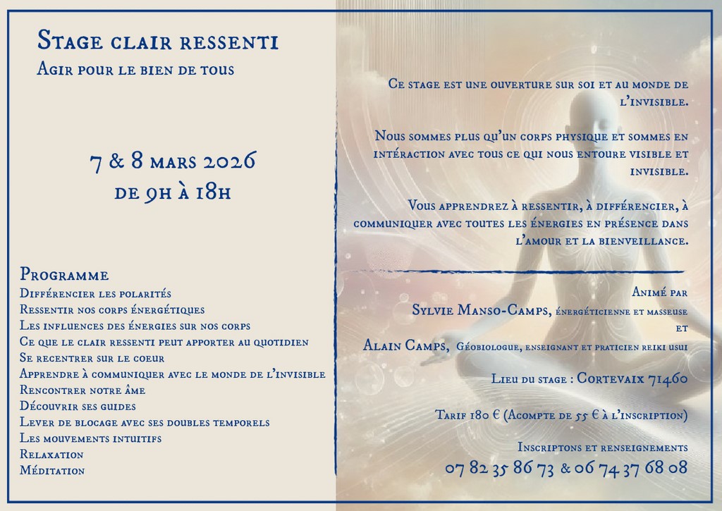 Stage clair ressenti perfectionnementle 11 & 12 octobre 2025