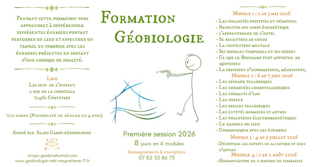 formation géobiologiepremière session 2026sur 4 modules de 2 joursModule 1 : 21 & 22 février